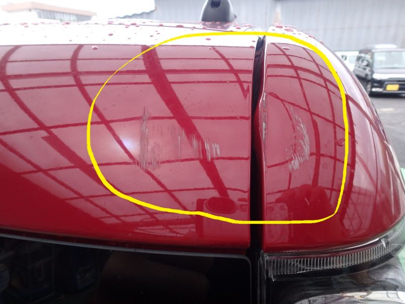 スペーシア 右サイドルーフ・ゲート上部修理 スペーシア 右サイドルーフ・ゲート上部修理 右サイドルーフとゲート上部のキズと変形での修理依頼でした。 見た目が少しマシになれば良いとのご希望でしたので、簡易鈑金させていただきタッチペンをさせていただきました。 今回の修理金額は¥4,000-でした 【修理前】 【修理後】